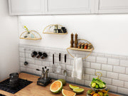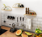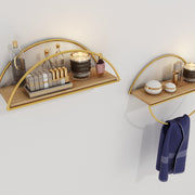 Decorative Mounted Wall Shelf. Ellipse Shape Unit Rack. (Pack of 3) (Gold Metal & Solid Wood)