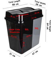 - ποΈ Dual Compartment Bin: Effortlessly separate your waste with two 50L compartments, usable together or individually.