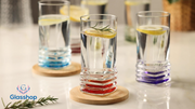 Introducing the Coloured Base Highball Drinking Glass Set, a vibrant and stylish
