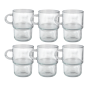 Glasshop 6-Pack Glass Mugs. 350ml. Clear Stackable Cups with Handles.