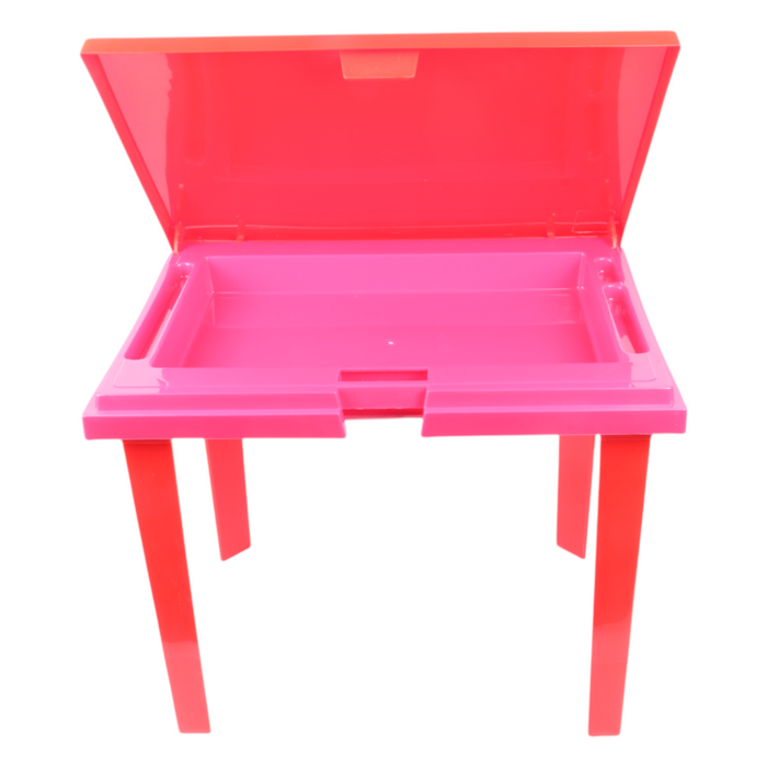 The Jolie Max Children's Table is the perfect addition to your child’s room, play area, or learning space. Designed with both functionality and fun in mind, this sturdy plastic table features a lift-up tabletop that reveals a spacious hidden storage compartment—ideal for keeping toys, books, art supplies, and learning materials neatly organized.