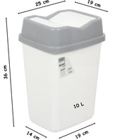 10 Litre Butterfly Swing Bin. Lidded Dustbin. Plastic Rubbish Waste Bin. (White)