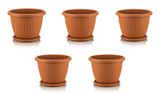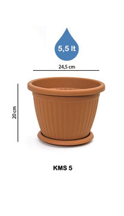 Kemer Round Flower Pot & Saucer. Grooved Base In/Out Multibuy.