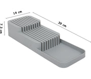 Contemporary Grey Colour: This knife organiser, with its sleek grey finish, adds a modern touch to any kitchen drawer, blending seamlessly with various kitchen styles.