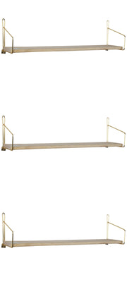 Modern Mounted Wall Shelf. Floating Shelf. (Pack of 3) (40 cm) (Gold Metal & Solid Wood).