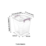- 7 Liter (Top side W 24 cm with handle x L 21.5 cm x H 26 cm Approx.) (Bottom 16.5 x16.5 cm)