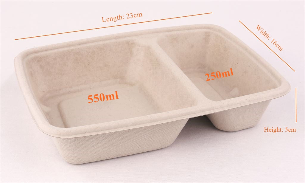 Sabert BePulp 2 Compartment Rectangular 800ml Food Container. 16 x 23 cm