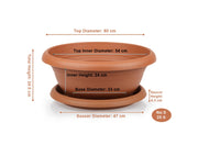 Wide Shallow Flower Pots with Saucer. Plastic Succulent Planter. (Diameter 60 cm)